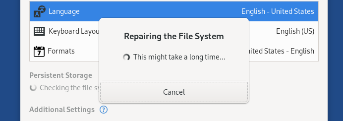 Tails puede tratar de corregir estos errores, pero esto podría borrar algunos de tus archivos y tardar mucho tiempo.