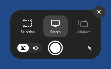 button to take a screenshot or start recording a screencast.Screenshots are saved in the Pictures folder, accessible from the Files browser.