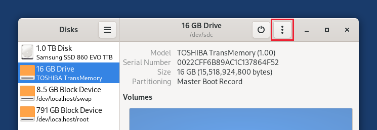 Installer Tails à l'aide de GNOME Disques