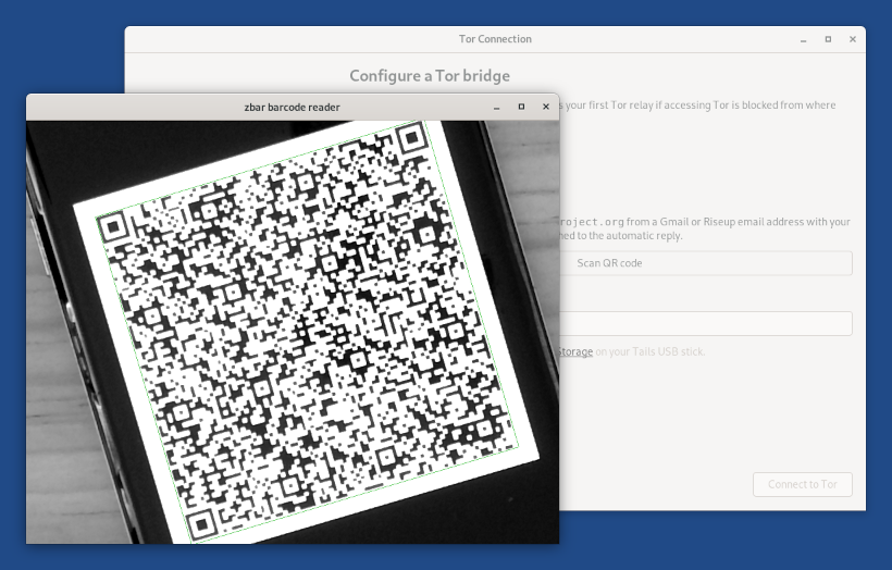QR code scanning for Tor bridges